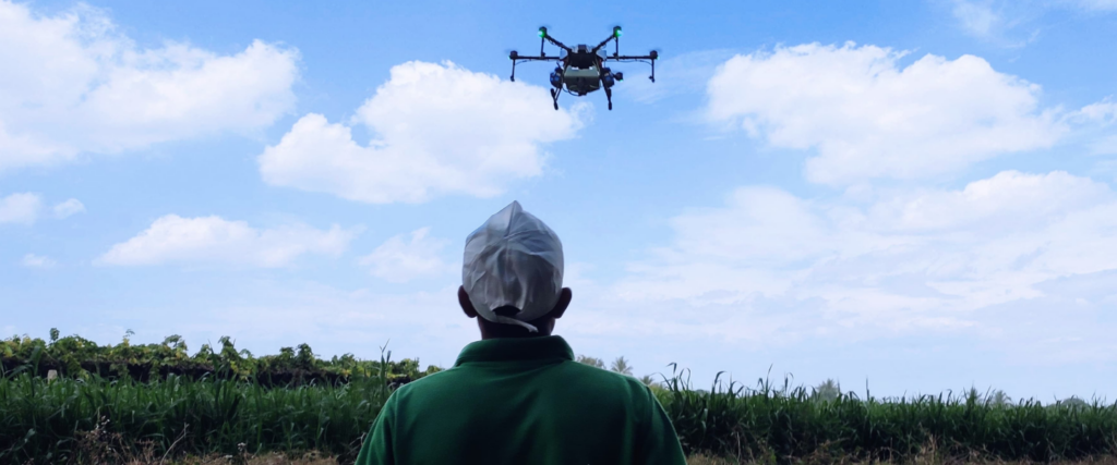 It uses drones and digital solutions to improve crop monitoring, spraying, and productivity.